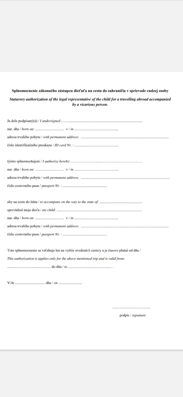 Len potvrdenie na vycestovanie jej nezabudnite dať notárom overené