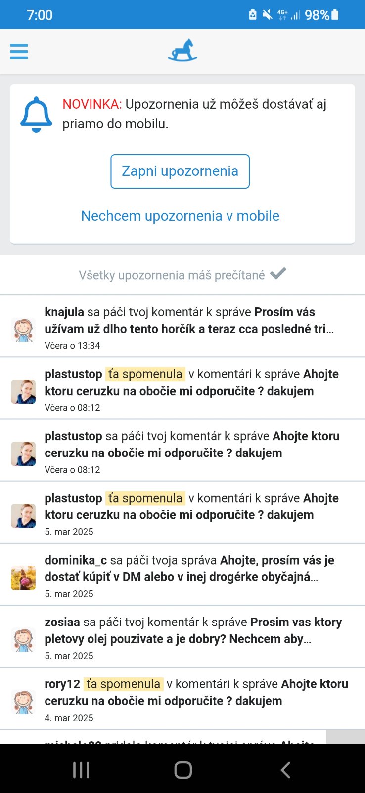 Ránko dievčatá,prosím vás čo mám zle, keď mi väčšinou nesvietia upozornenia? Občas ano, väčšinou nie. Urobila som screen. Až kliknem na ten zvonček vpravo hore, vidím, že nejaké mám.Ďakujem