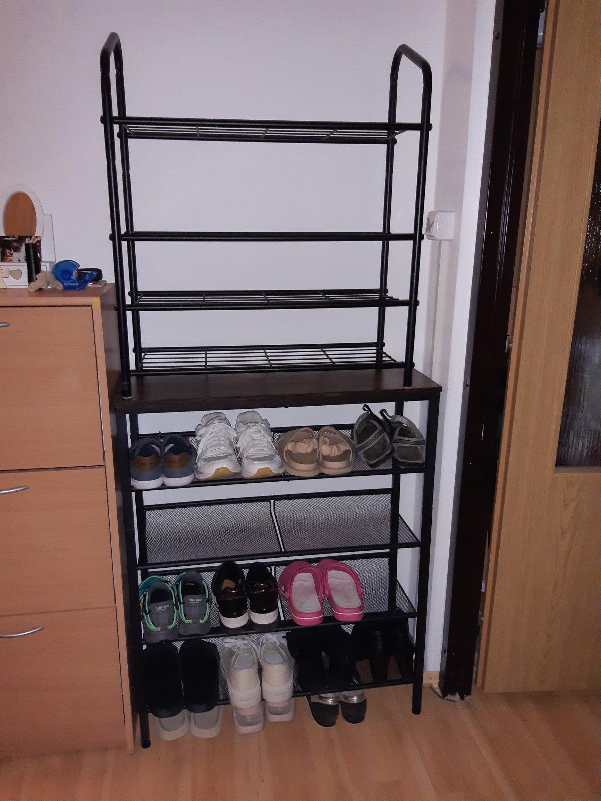 @zvieratko31 poskladane, na cm mi to tam voslo, ano je to uzke ale ako vidis velkost mojej odkladacej plochy pochopis moju radost 🤣 to co je tam naskladane bolo narucane v tom rohu. Dole je muz 42, zvysok su 38 a 37topanky