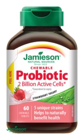 3) Na rozdiel od mnohých iných výživových doplnkov na trhu, Jamieson Probiotikum tablety na cmúľanie s príchuťou jahodového jogurtu nie je potrebné skladovať na chladnom mieste (v chladničke), preto je vhodné aj nacestovanie