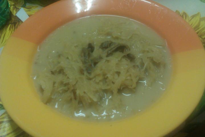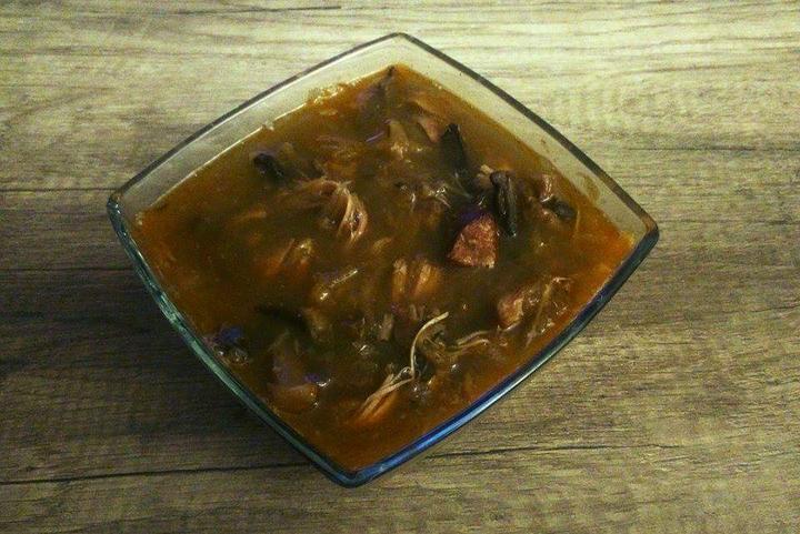 recept : Na oleji speníme cibuľku, pridáme na kocky nakrájané bravčové mäsko, najlepšie je z krkovičky..pridáme korenie čierne, soľ, červenú papriku a na menšie kúsky posekané udené bravčové rebierka.. zalejeme vriacou vodou..keď mäsko na rebierkách odchádza od kosti ( vyberieme rebierka a odkostíme ich ) vložíme naspäť do hrnca a pridáme kvalitnú údenú klobásu , sušené huby ..zalejeme šťavou z kapusty, mi jej hovoríme "juška "a pridáme kyslú kapustu ...nakoniec pridáme oplachnuté jačmenné krúpy ..keď je všetko uvarené, odstavíme kapustnicu nech sa všetké chute spoja ..dôležitý je postup..dobrú chuť🙂