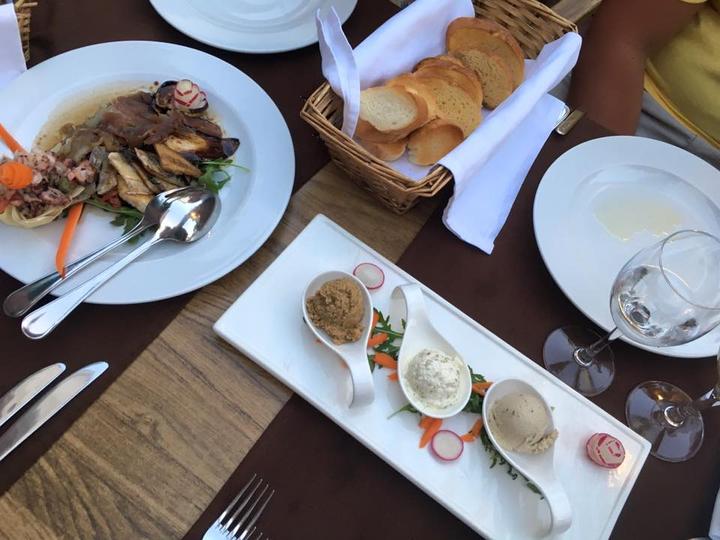 Decentne predjedlo 🙂 Chobotnicu a olivovu pastu by som jedol aj kazdy den. Jooj keby sme tak mali doma more 😉 A hecli sa dokonca aj na kukuricny chlieb ...