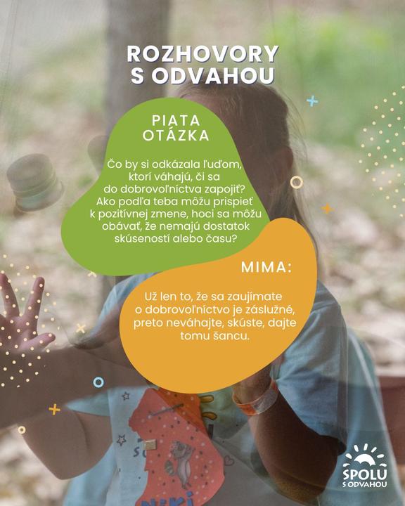 P.S. Ak máte záujem stať sa dobrovoľníkom nadácie Spolu s odvahou, navštívte našu webovú stránku https://spolusodvahou.org/sk/dobrovolnictvo/