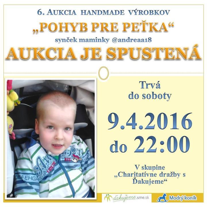Šiesta #drazba nám končí v sobotu. Ešte stále si tak môžete vydražiť niektorý/é zo 428 výrobkov a pomôcť malému Peťkovi. Dražba prebieha v tejto skupine: https://www.modrykonik.sk/group/7813/detail/ Ďakujeme za každú pomoc.