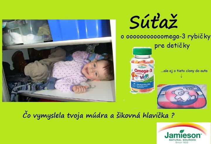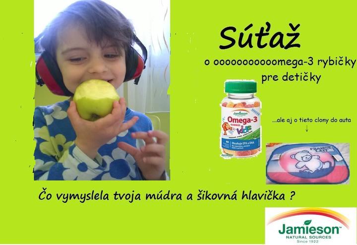 ...................SÚŤAŽ .......................... Od1. apríla som spustila crazy #fotoshow, tak ak máte chuť zapojte sa !!!! Podmienky súťaže sú: zdieľaj na svojom blogu fotku svojej múdrej hlavičky, resp. toho čo vyviedla, označ príspevok#jamieson #jamieson_sutaz2 . Súťažíme od 1. apríla do 9. apríla 2015 do polnoci. Výhrou budú Omega-3 rybičky pre deti, clony do auta a každú foto určite odmením #srdiecko Teším sa na Vaše príspevky a verím, že sa všetci zasmejeme, lebo smiech lieči #sutaz