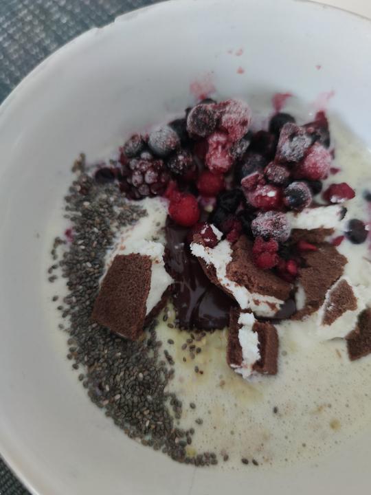 Ja ho dnes začínam bielkovinovou kašou s mojím domácim obľúbeným Kinder pinguin, chia a ovocím♥️