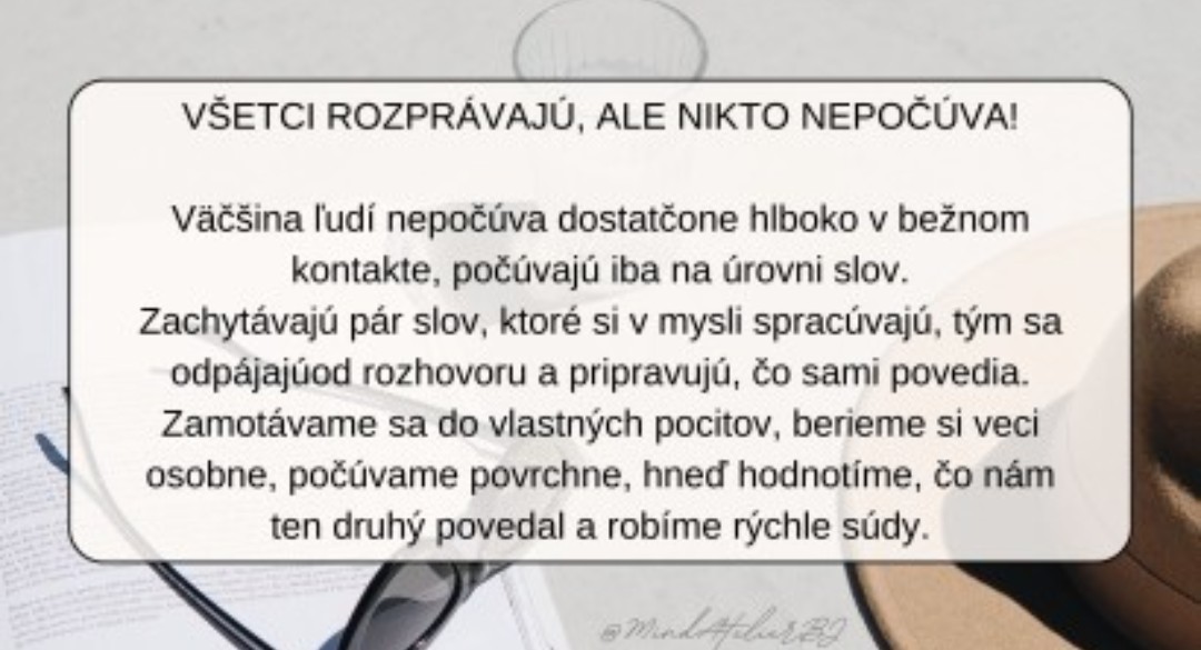 💬 Vedomé počúvanie znižuje stres a konflikty vo vzťahoch o 32%. 70% konfliktov vo vzťahoch vzniká z nepochopenia, nie z nesúhlasu.