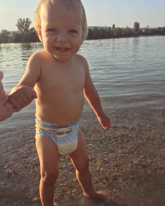 Keďže my bývame 5min od jazera #splashers pants je moja povinná výbava v prebaľovacej taške. A potom sa môžme takto neplánovane očľupkať aj pri západe ☀️