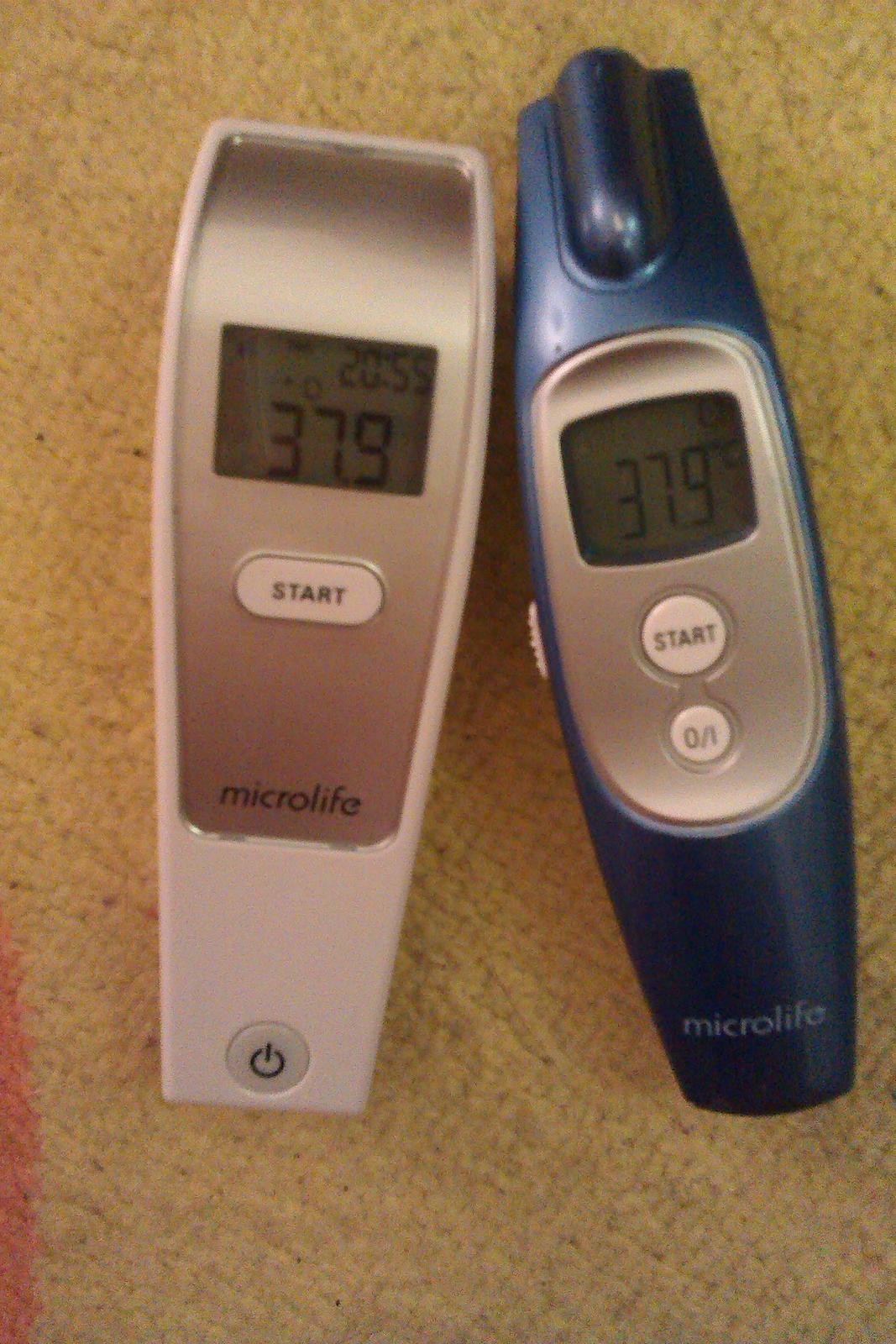 Microlife. Dva výrobky, jedna značka. Jeden starší, druhý mladší. Prvý Microlife100 (modrý teplomer) sme si zaobstarali, keď sa nám narodila druhá dcérka. Za tie roky používania sme ani raz nemuseli meniť batériu a pritom deti boli stále choré. Pred nedávnom k nám do rodiny pribudol aj mladší brat Microlife150, vďaka zapojeniu do súťaže. Po dnešnom krátkom výlete nám ochorela staršia dcérka, tak som ich porovnávala. Aj výzorovo.