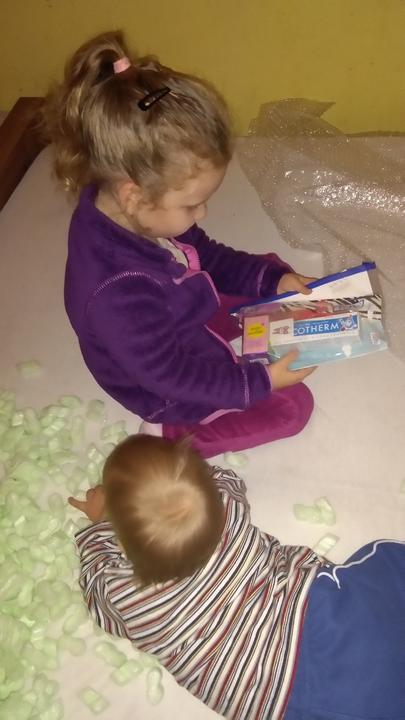 V deň, keď nám kuriér doručil balíček, dcérka bola už v škôlke, tak sme na ňu počkali a otvorili sme až po škôlke. Tešili sa obaja 🙂