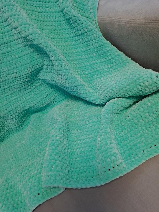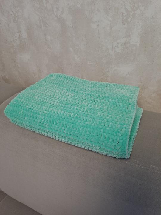 Ponúkam na predaj krásnu, ručne háčkovanú detskú deku v sviežej mentolovej farbe.
