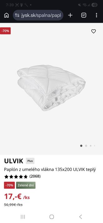 Ahojte, je tu niekto kto pracuje v Jysku? Zaujima ma cena za tento paplon a vankus Ulvik. To akože pred akciou stali tie produkty naozaj tolko veľa? Totizto asi 4-5r dozadu sme ich kupovali pre dceru, zachviľu pôjde ku nej do izby aj syn, takze potrebujem kupit sadu aj pre neho...chcela som zobrat to isté co ma dcéra, ale teraz neviem ci kupit, lebo je "akcia" alebo kludne pockat a realne tolko po akcii stat nebudú....lebo určite tolko nestali pred rokmi ....cize moja otázka znie - po skončení akcie bude naozaj platiť ta pôvodná cena?
