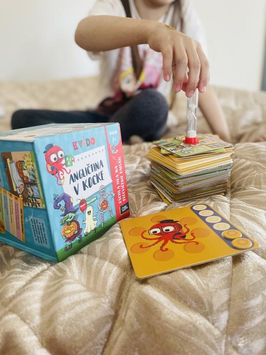 Nedávno sme spolu objavili Kvído – Angličtina v kocke a musím povedať, že to má úspech👍 Je to taká milá pamäťová hra, kde si deti najprv zapamätajú kartičku a potom odpovedajú na otázky – takže si nenápadne precvičujú slovíčka aj pamäť zároveň.