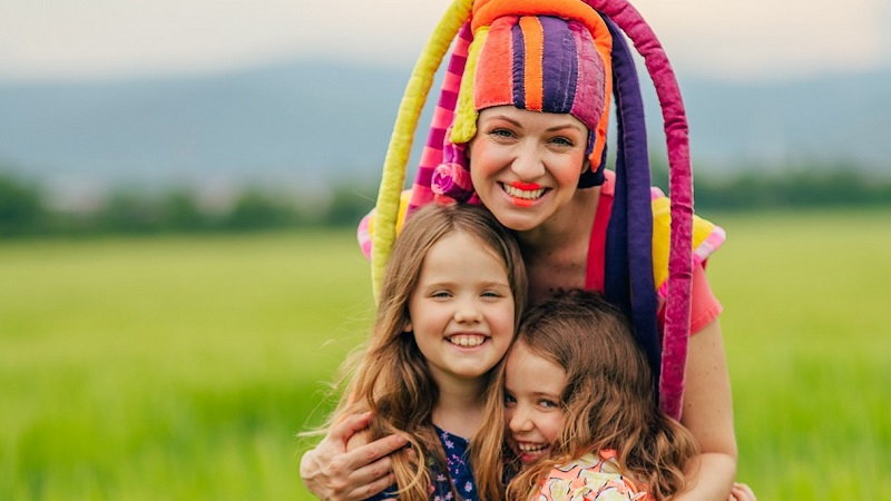 Keď už máme celý farebný látkový kruh vytiahnutý, vyhlásim: „Aha, Enďa, toto budú dnes tvoje krídla.“ Snažím sa látkový kruh zložiť na polovicu, no pritom sa do neho celá zamotám. Endorfína sa ma snaží vyslobodiť, no čo sa podarí odmotať zo mňa, to sa zamotá zase na ňu. Deti sa smejú a poradia nám, ktorým smerom máme každá ísť, aby sme sa odmotali. „Hurá! Máme to!“ „Endorfína, stoj tu, my ti tie krídla urobíme!“ Ja držím stred farebného polkruhu za kolegyňou, dve deti sa chytia polkruhu vpravo a vľavo, celkom na konci a pohybujú ním dopredu a dozadu. A zrazu sa to stalo, sestrička Endorfína Skúmavá stojí uprostred oddelenia ako motýľ. Na oboch stranách jej mávajú obrovské farebné krídla a ona začína mávať rukami s nimi.