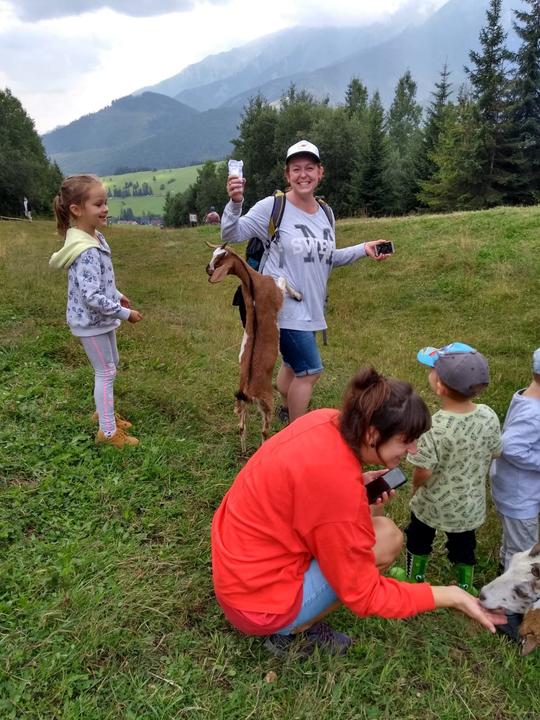 Ako sa smeje až jej ani oči nevidno. A tá ďalšia koza, menovite Sofka, na ňu skáče (doslova) ako koza. Okrem toho by som dala do pozornosti, že to je jedna z mála dovolenkových fotiek, na ktorých nie som rozbalené Kinder Surprise a.k.a Nosiaca matka (-ak sa niektorej matke teraz dostal na jazyk pojem nosnica, nech ho rovno prehltne, lebo neviem kto onen pojem vymyslel, ale rozhodne to nemohol myslieť vážne 🤦♀️) a vidno tak napríklad aj predok mikiny, ktorú raz - o takých 15 kíl neskôr - plánujem nosiť ako oversize 🤞.