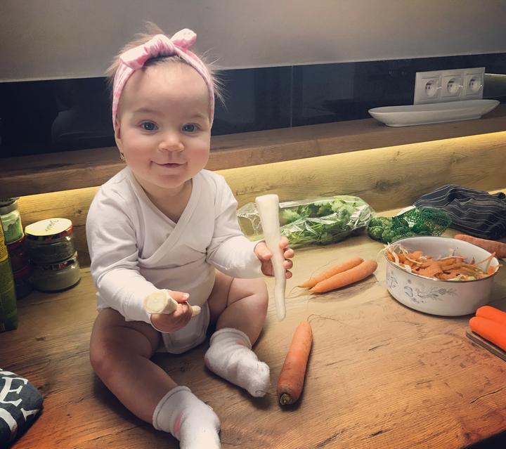 Napríklad dnes ráno ani oči poriadne neotvorila a už ju plieskalo v postielke. "Ajajaj, zas super deň." Neva, ako správna matka som sa jej teda prihovorila. Amen tma, to som priam naštartovala samonasieraci modul a k plieskaniu sa pridal plač a krik v znení "nech jej dám pokoj"... Tak som si radšej pozbierala svoje "šveskty" a v kľude som si ustlala posteľ a snažila som sa nestratiť nervy do 5 minút. Premýšľala som ako začnem deň. Či s krikom alebo plačom... Vybrala som si smiech. Povedala som si, kašlem nato, aspoň si z toho budem srandu robiť. Keď sa "vyškriekala" tak, som sa jej znovu prihovorila, chvíľu počkala kým na mňa aspoň pozrie a začali sme "bojovať" s jedmi.