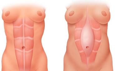 Diastáza m. recti abdominis je označenie pre rozostúpenie priameho brušného svalu v mieste linea alba, čo je tkanivo alebo väzivo, ktoré spája ľavú a pravú stranu svalu . V dôsledku vnútrobrušného tlaku sa ľavá a pravá strana svalu oddelia a vytvorí sa medzera. Oslabené a málo elastické väzivo nedokáže udržať vnútorné orgány, tie sa vydúvajú a to spôsobuje ovisnuté brucho alebo vydúvajúci sa hrebeň v oblasti pupka.