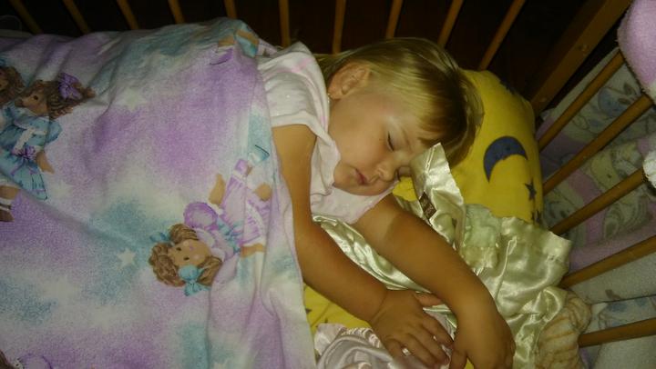 Ma 2 roky a aka je vybabrana. Hresim ju, aby uz bola ticho, lebo Milanko uz chce spat. Ona stichne a zrazu za ku mne nakloni a hovori: Bubim Ta, manka. (Lubim Ta,mamka). No a teraz sa tvar prisne. Mala potvorka.