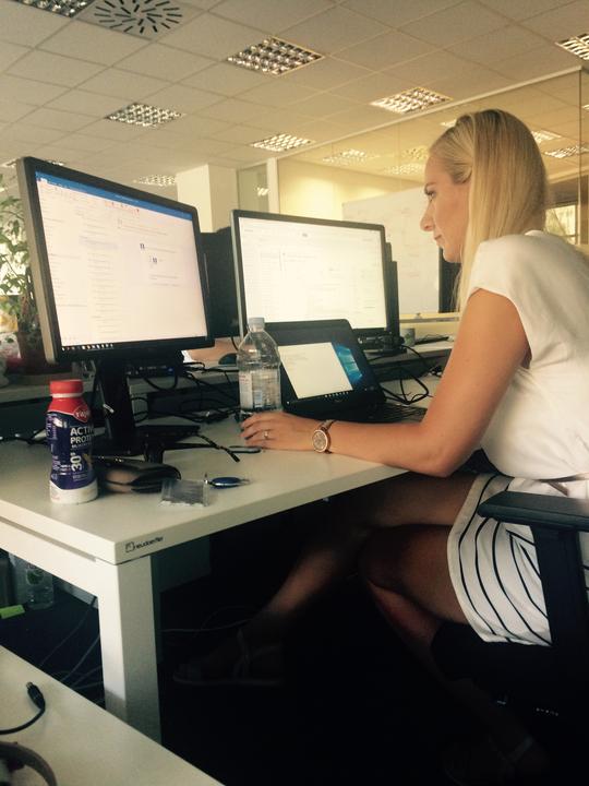 „A čo by som s tým mala urobiť?“ Spýtala sa vyjavene a mimovoľne odtiahla bujné poprsie ďalej od posuvného pásu.