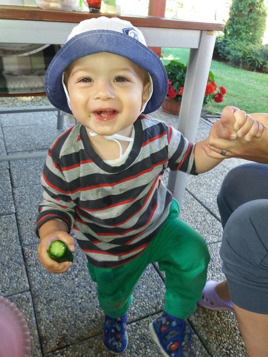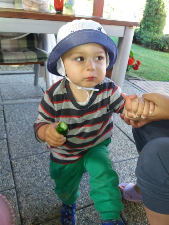 perši dzeň to nebulo take hrozne bo mi dva dzeci dala starim rodičom...trece mi nemohla, bo tota ma jasne prioriti, večšinu času nevirevuje "mama", aľe "cicka"...no ic dagdze s takim dzeckom...taže mi zostala na karku...aktualne mame zabavu, bo dzecko nesce peľuchu, sere na šerbeľ, aľe ľem obrazne a šika kadzi tadzi...taže cali dzeň beham s rendu...už mi z toho šaľena...aľe ani baboi s dzedom to bars nevichitaľi, bo prostredňa ma akurat frasove obdobie "Čoooom???" "Dzedoi, dze idzeš?" "na zahradku" "Čooom?" "bo treba kvitki popoľivac" "čoooom?" "bo sucho"..."čoooom?"..."bo nedižďovalo"..."čoooom?"..."oľe, ic za baboi, ma zmeržľinu"...