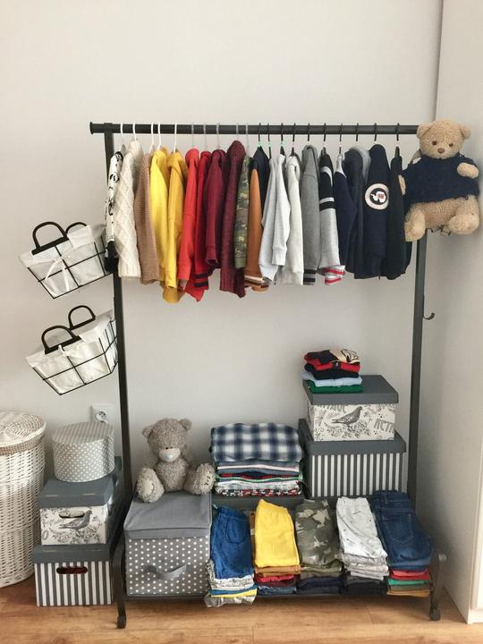 Ďalšie naše dočasné riešenie, kým nemá drobec skriňu, zo sušiaku na prádlo a tašiek sme pokročili aspoň takto. 🙂 Uvidíme na ako dlho, ale aspoň už mám prehľad kde čo má. #pepco
