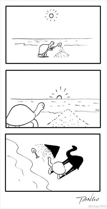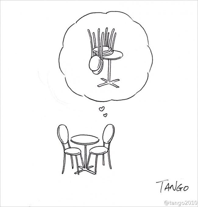 Je minimálne jeden dôvod, prečo sú komiksy od ilustrátora menom Tango, na internete také obľúbené. Jeho ilustrácie dokazujú, že v jednoduchosti je krása. Obrázky sú čiernobiele a zabavia často aj bez jediného slova. Tango sa na svet pozerá z nezvyčajnej perspektívy, preto vidí v obyčajných veciach to, čo iní prehliadajú, čo by nám nikdy nenapadlo. 👍😊