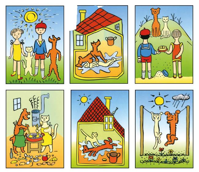 Celý šatník kocúrika a myšky, a myškine balóny, sa nachádzajú na 4 módnych kartách. Na nich sa predvyrezané oblečenie vyfarbuje a hotové sa odtiaľ jednoducho vytlačí.