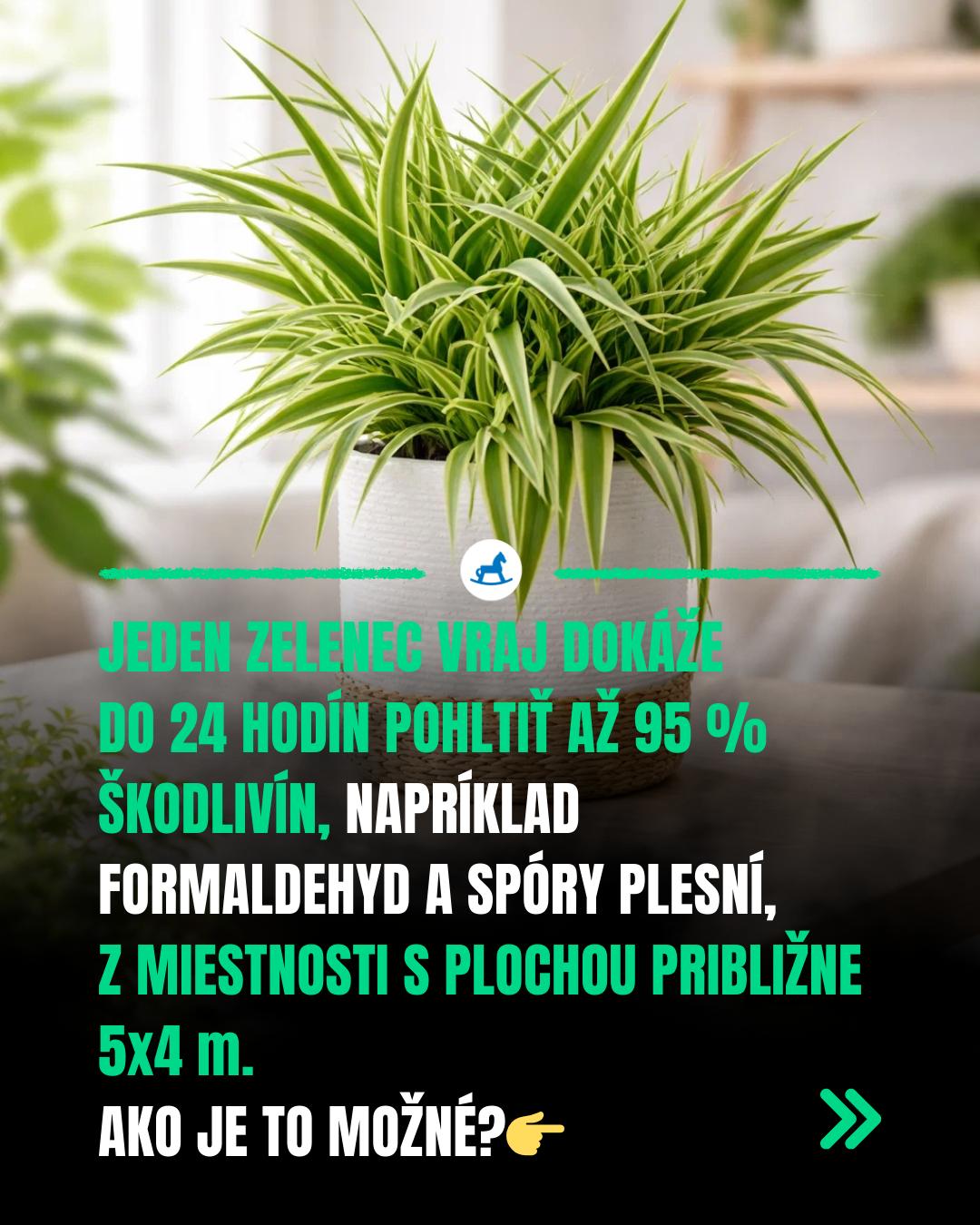 Vedeli ste, že vzduch v našich domácnostiach môže byť paradoxne znečistenejší ako ten vonku? Chemikálie sa totiž nepozorovane uvoľňujú z nábytku, farieb, plastov a dokonca aj z čistiacich prostriedkov, ktoré používame pre „zdravší“ domov. Našťastie existuje riešenie, ktoré je lacné, krásne a overené samotnou NASA. Zoznámte sa so zelencom - rastlinou, ktorá premení váš byt na kyslíkové kúpele.
