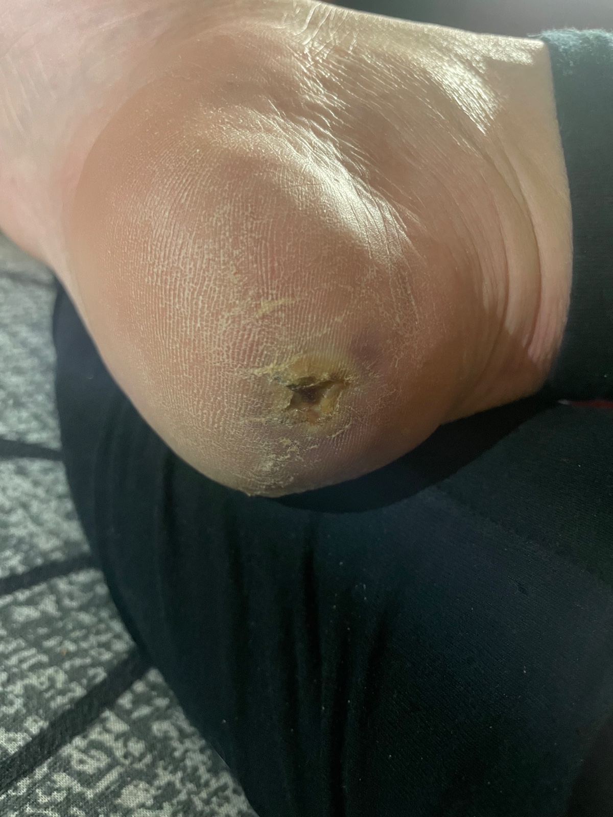 Ahojte moja mamina ma niečo takéto na nohe na päte keď bola u ortopedičky povedala že to ma zapálený vyrostok no mne sa nezdá že by to bol vyrostok a takto sa jej to zhoršilo pred 3 dňami na ortopédii jej povedala že ma ísť RTG ožarovanie tam dostala termín 17.4 tak či neviete co to môže byt dneska chceme ísť na pohotovosť na koľko mamina ma aj cukrovku a v noci ju to tam dosť trhá nemôže ani spať