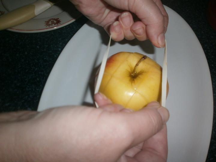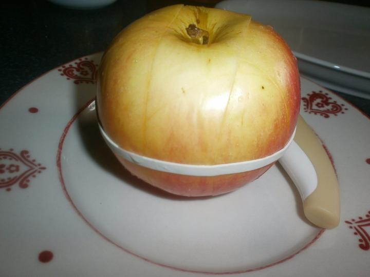 Potrebujeme jablko ,nožík a gumičku🙂