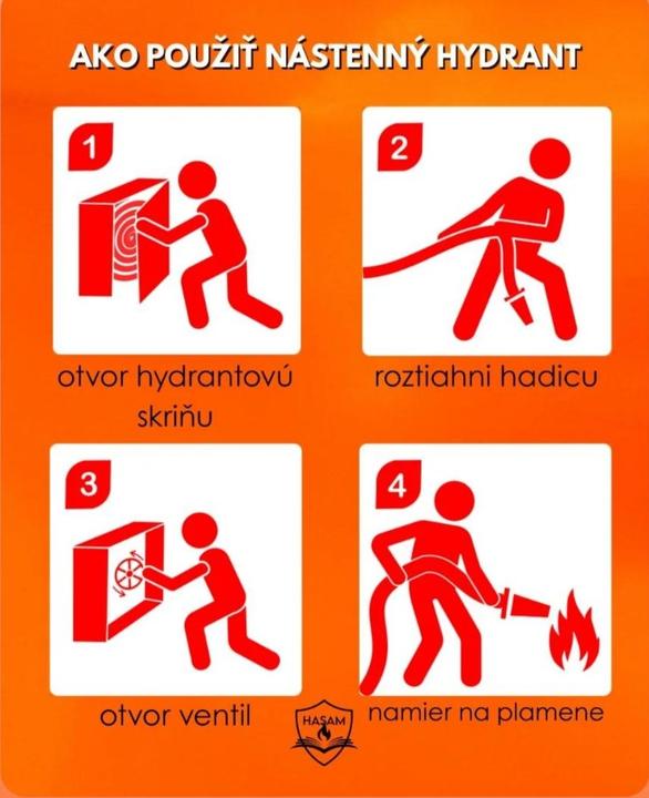💡 Pamätaj: nástenný hydrant je na začínajúci požiar, ktorý si ešte trúfneš zvládnuť. Ak je oheň veľký alebo dym hustý - utekaj do bezpečia a volaj ☎️ 150.