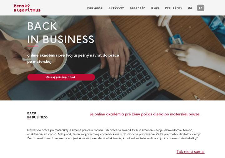 Opäť je otvorené prihlasovanie na 3-mesačný bezplatný online kurz pre mamy, ktoré sa plánujú vrátiť do práce. https://www.zenskyalgoritmus.sk/back-in-business
