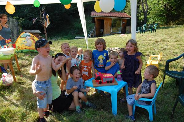 Ja by som ju velmi priala tymto skvelym deckam! Fotka je z leta, ked moj synator (v tricku poziarnika Sama) oslavoval svoje narodeniny. Oslavu sme robili na zahrade aby sa zmestili vsetci jeho kamarati a decka tam radi chodia, ale nemaju tam nic na hranie. Pomahaju nam v zahradke, z coho sa tesime, ale za tu pomoc by si oni zasluzili uz aj trampolinu. 🙂