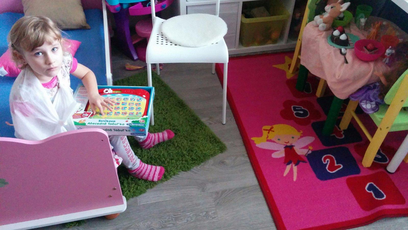 Trampolina by potesila nasu malu princeznu. Skace totiz vsade. Na posteli ci gauci.