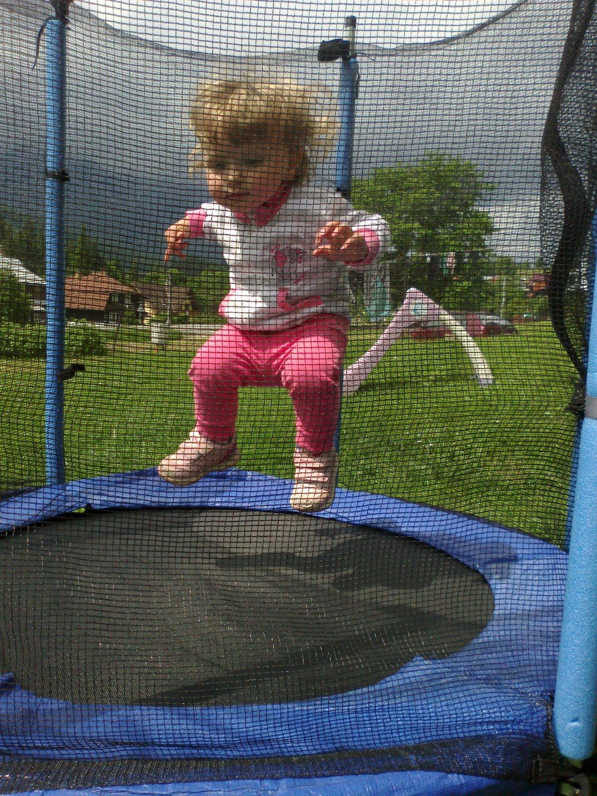 Jej to je pekná a veľká trampolína, to by bolo radosti, keby sa objavila v našej záhradke. Naše tri deťúrence o nej stále snívajú, a keďže nemajú na čom skákať, tak dievčence skáču cez švihadlo, no a malý to ešte nevie. Tam by sme sa všetci zmestili aj my s ockom, to by bola sranda a paráda. Tak snívajme ďalej 🙂 🙂 🙂