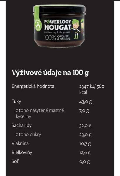 @sutaz Powerlogy Kids BIO Nougat Cream 200 g obsahuje 46 gramov cukru