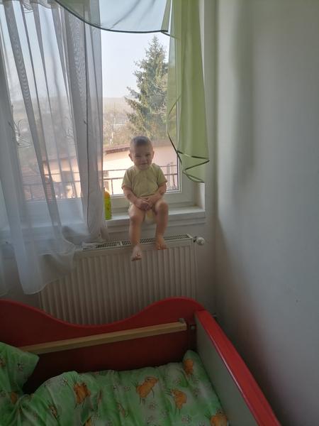 Ja som môjho malého keď mal rok a 3 mesiace nasla sedieť na okne v izbe.. Neviem ci mu pomohli bratia 2 a 4 ročný ale tvrdia ze tam vyliezol úplne sám 🤣