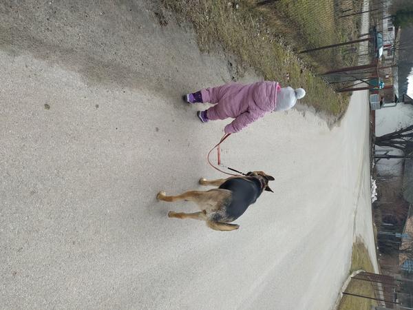 Má síce len rok a pol...ale s našou fenkou sú nerozlučne kamošky... všetko čo nájde jej nosí kamene,konare,granuly z misky....no a Tá si zas od nej všetko vezme a aj keď je veľmi hyperaktívna...pri nej sa chová veľmi nežne, keď hrabe jamy, dcérka sa k nej pridá a potom do jamy vlezie...a teda vezme ju už aj von😃 ❤️