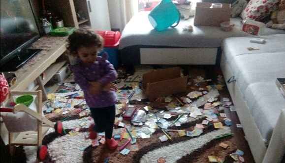 @sutaz takto nám mladšia dcérka (2roky) '' nadizajnovala '' obývačku kým som staršej dcére vysvetľovala učivo do školy, keďže majú dištančné vzdelávanie. 5 minút tichá, 2hodiny upratovania a triedenia 😂Dostala sa do krabičky kde bolo pexeso, ktoré si staršia dcéra poctivo zoradila a uložila podľa druhu.