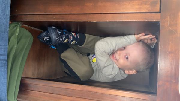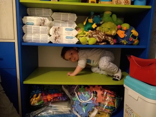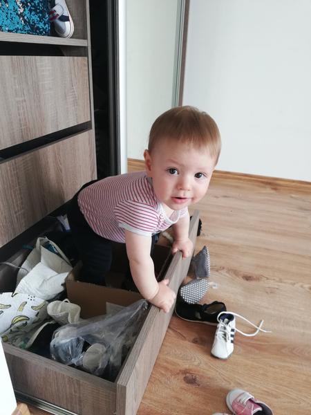 @sutaz na to ze nás drobec bude mať o chvíľku svoj 1.rok,toho vyviedol až až 😂 každý deň vyparati niečo nové... Najobľúbenejšie je skrývať sa do skríň, rozsypavat chrumky po celom dome, vyhadzovať veci zo suflikov, ale to sú také bežné detské vylomeniny. No najväčšiu radosť som mala keď som ho našla vlezeneho v suflik, ako sa v ňom vozil. Samozrejme suflik potreboval potom opraviť, lebo ho odtrhol z koľajnicky 😂