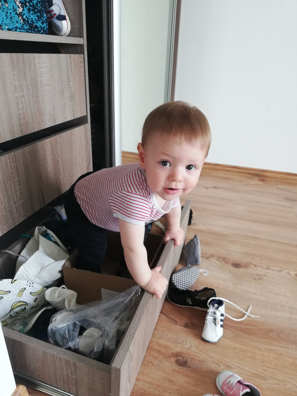 Náš malý nezbednik má 13 mesiacov..ešte zatiaľ veľa veci nedokáže, ale už začína vystrkovať rožky😄všade zalieza, schováva sa, všetko chce chytiť a hneď si napchať, ako inak, do úst..otvara si sám skrinky, šuflíky, všetko rozhadzuje a mama upratuj😂u babky stačila sekunda nepozornosti a už bol na zemi rozsypaný kvetináč (našťastie kvetinka prežila🌼)..a ešteže pije maminka kávu vždy studenú, keďže ju malý veľmi túžil ochutnať a skončila celá na ňom🙈..