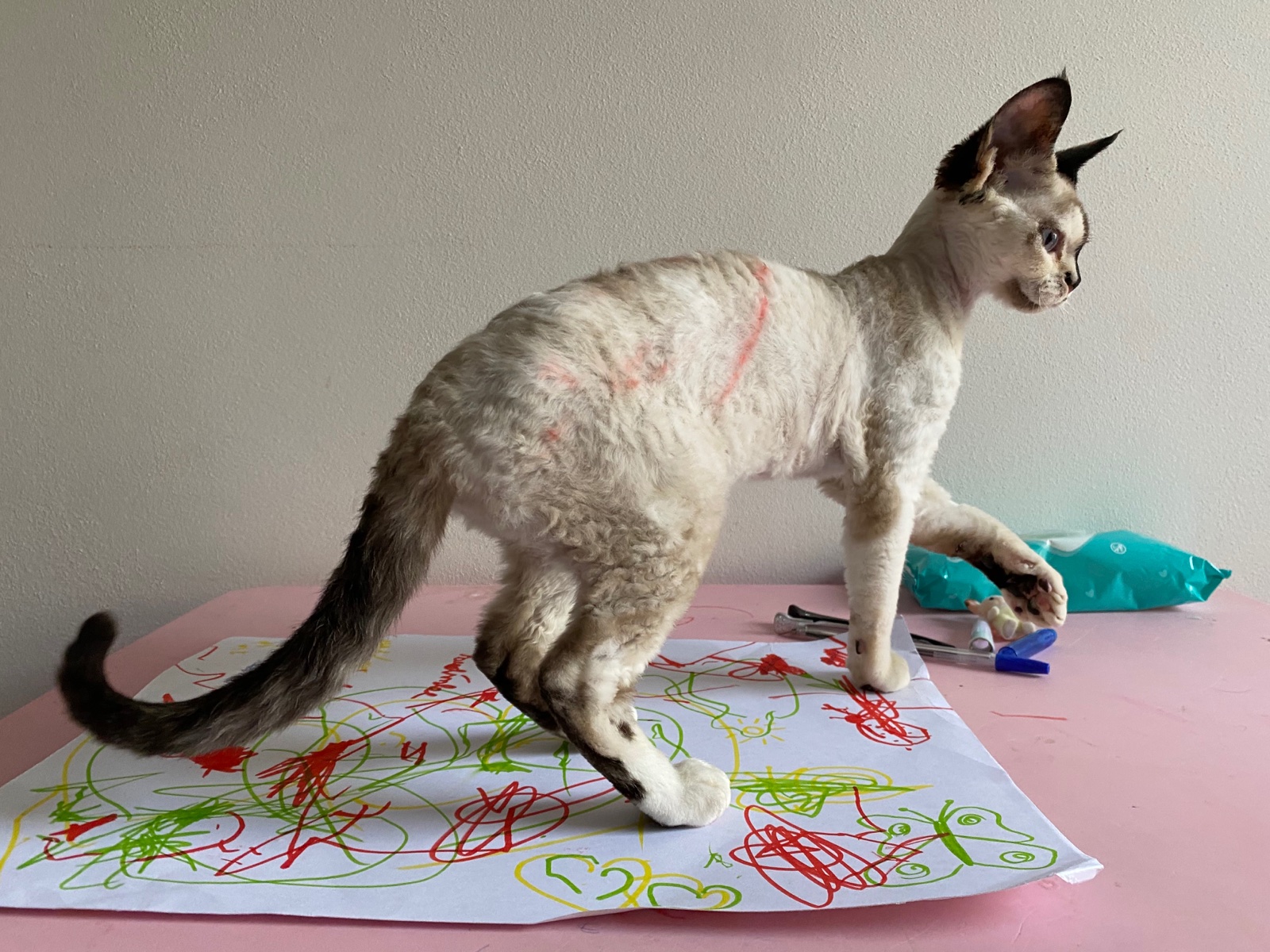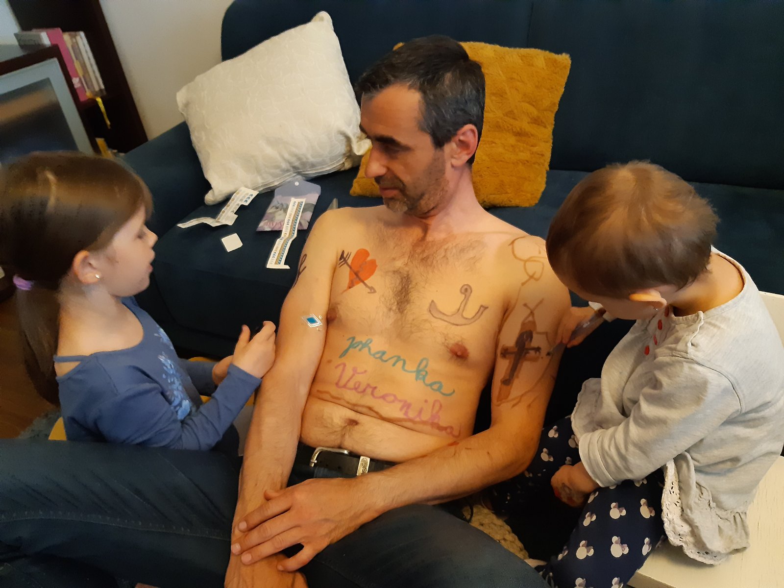 @sutaz momentálne sme v karanténe. A zabaviť nejako dievčatá je celkom ťažké. Malujeme kamene, chodíme aspoň na dvor. Veľa kreslíme a hráme sa. Ale včera sa najmenšej podaril kúsok. Učila som ju farby. Pomocou fixiek, a naša mačka bola v nesprávny čas na nesprávnom mieste. Ale vôbec jej to nevadilo. Vyzerala akoby mala nejaké zranenie. Fotku prikladám 🙂 trampolína by sa nám zišla. Aspoň by si vybili energiu , odratavam dni...
