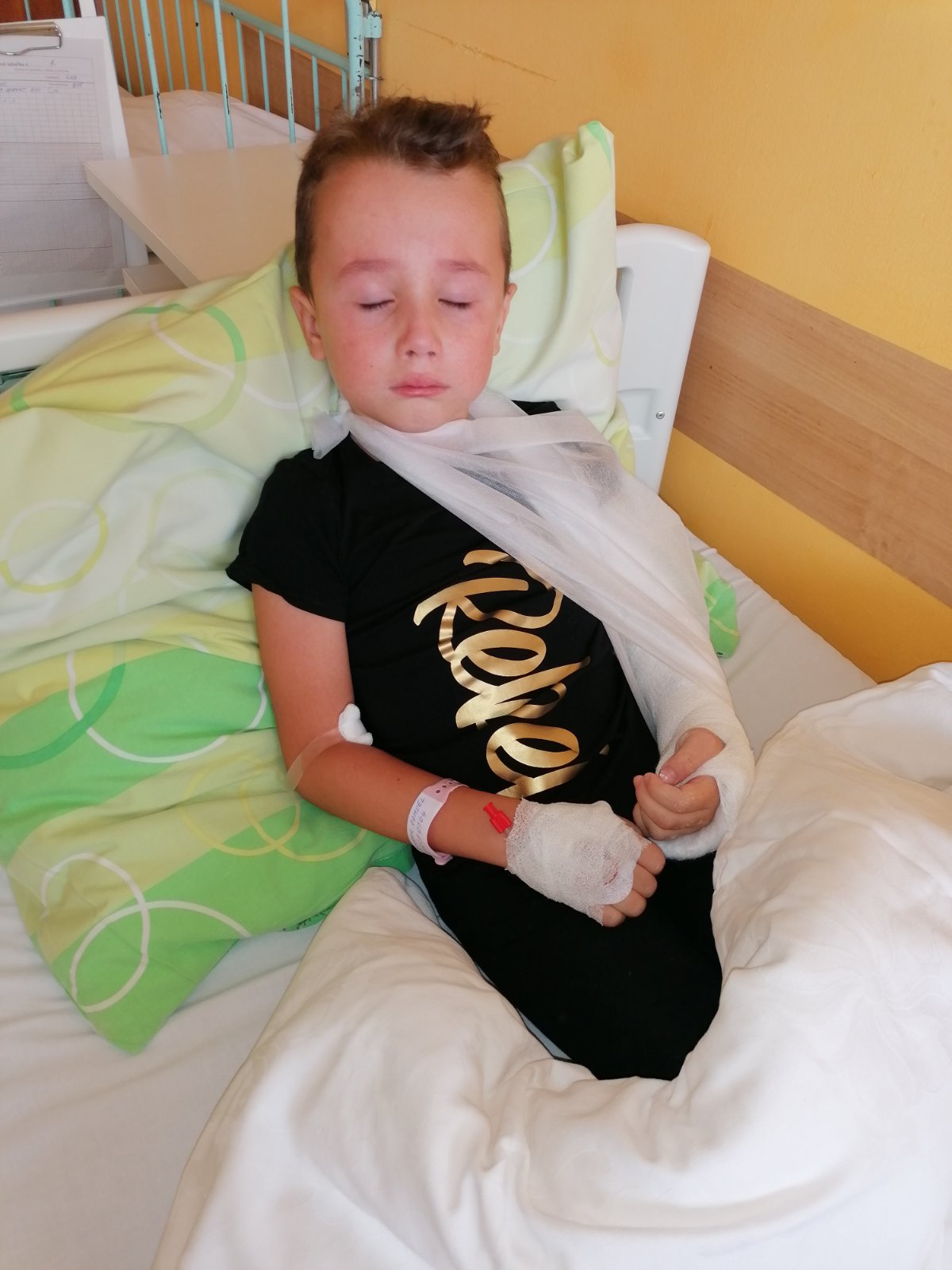 @sutaz Počas karantény, keď boli škôlky zatvorené sme sa tešili, kedy ich konečne otvoria.. Blížil sa september, ja som získala novú vysnívanú prácu, tak som sa tešila, že všetko ide podľa predstáv a malý konečne nastúpi do škôlky.. Bol krásny deň, boli sme sa kúpať a keď sme sa vracali domov, potkol sa a padol pár metrov pred domov.. Videla som ze kosť vybehla nad lakťom vonku.. 😑 Utekali sme na pohotovosť, kde nám povedali ze ruka je len narazena.. Mne to ale nedalo, tak som volala do BB kde nás o týždeň objednali na kontrolu.. Celá natesena že veď len "narazena" sme tam o týždeň išli.. Nikdy nezabudnem na tie slová keď si ma zavolali na bok a povedali ze tu bude musieť ostať na operáciu lebo to ma už zle zrastené a kedy naposledy jedol a pil lebo je to urgentne.. Lámali mu tu ruku na novo a dali drôty.. O 3 týždne na kontrole mu vyšiel drôt von lebo ho telo neprijalo, tak opäť operácia.. Poviem Vám, toto obdobie rusok a karantény nezabudnem nikdy.. Bolo to najhoršie obdobie a vďaka niektorým ľuďom som to zvládla.. Trvalo to 3 mesiace, malý stihol škôlku v decembri 2 týždne a opäť ju zavreli.. 🙈 Vždy keď si spomeniem na to, čo sa stalo tak ma pichá pri srdci.. Keď mu robili rentgen a vytacali tu ruku v tej prvej nemocnici kde ruka bola len narazena a smiali sa mu ako vyvadza, lebo veď je " len narazena" na to nezabudnem nikdy, keďže mi tam od bolesti odpadaval.. 😐 Takže na toto obdobie plne bolesti nezabudnem.. Pridávam aj fotku z toho obdobia.. Výhre by sa veľmi potešil..