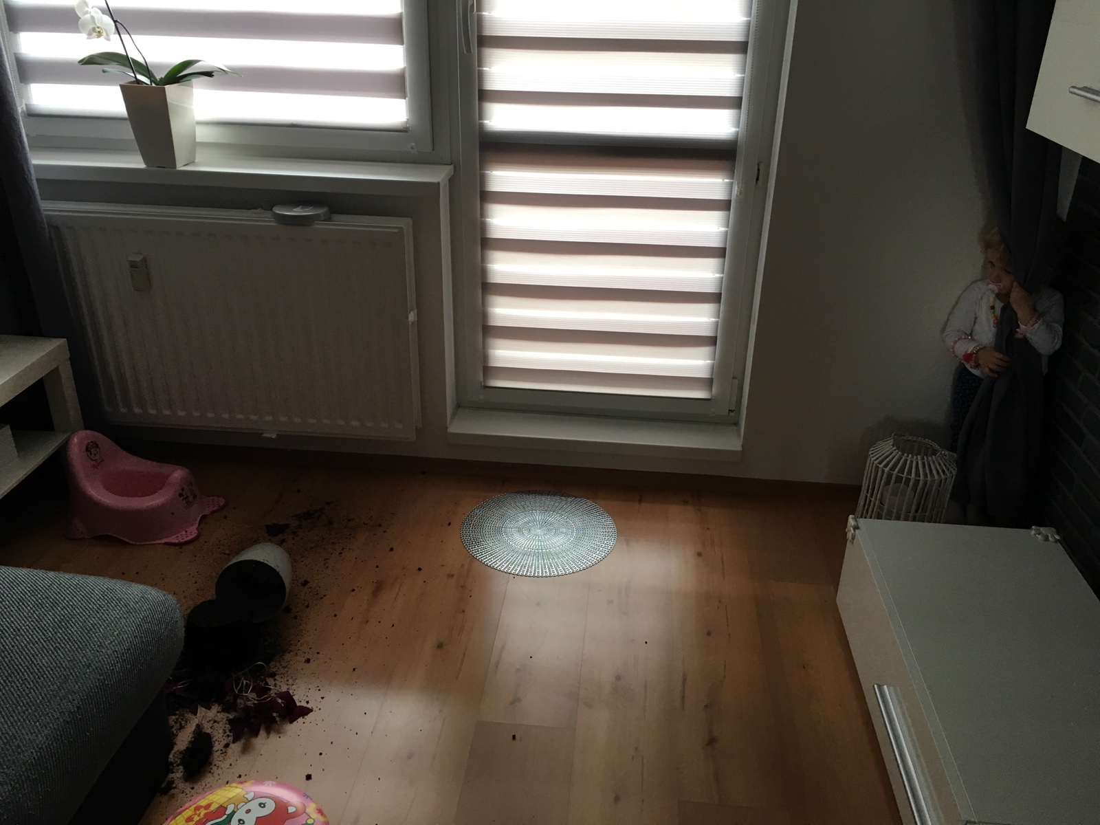 Syn počas mojej neprítomnosti, keď som bola na záchode vylial po kuchyni acidofilne mlieko a kričal na mňa s radosťou aha mamka😄🙉.