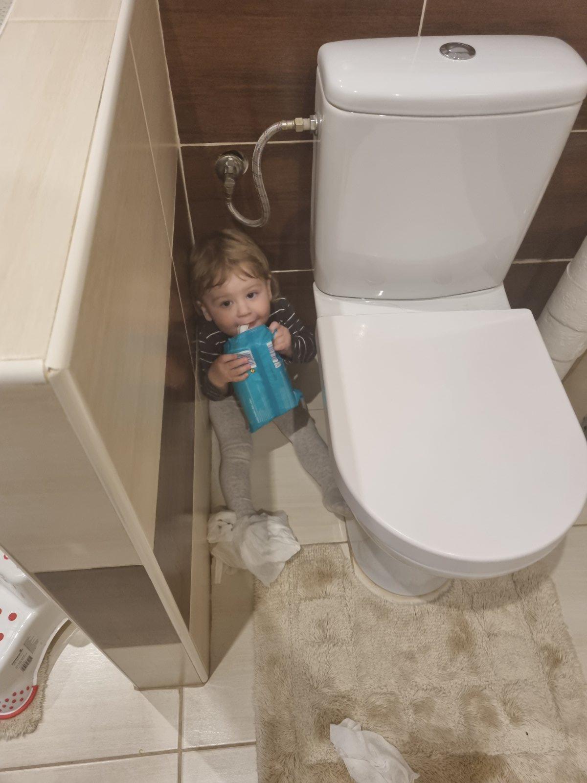 @sutaz Nuz, nas syncek pocas karanteny mal veeela casu preskumat cely byt a objavil jazierko! - rozumej toaletnu misu. Okupali sa tam postupne kremiky, zubna pasta, cely toaletny papier... Je uz velmi ucenlivy a zacal si nosit svoje ocikane plienky do smetiaka, ale nenosi tam asi len tie, lebo uz mi v domacnosti chyba viac veci vratane mojej oblubenej kefy na vlasy... mam take tusenie, ze uz je niekde na skladke 🙈