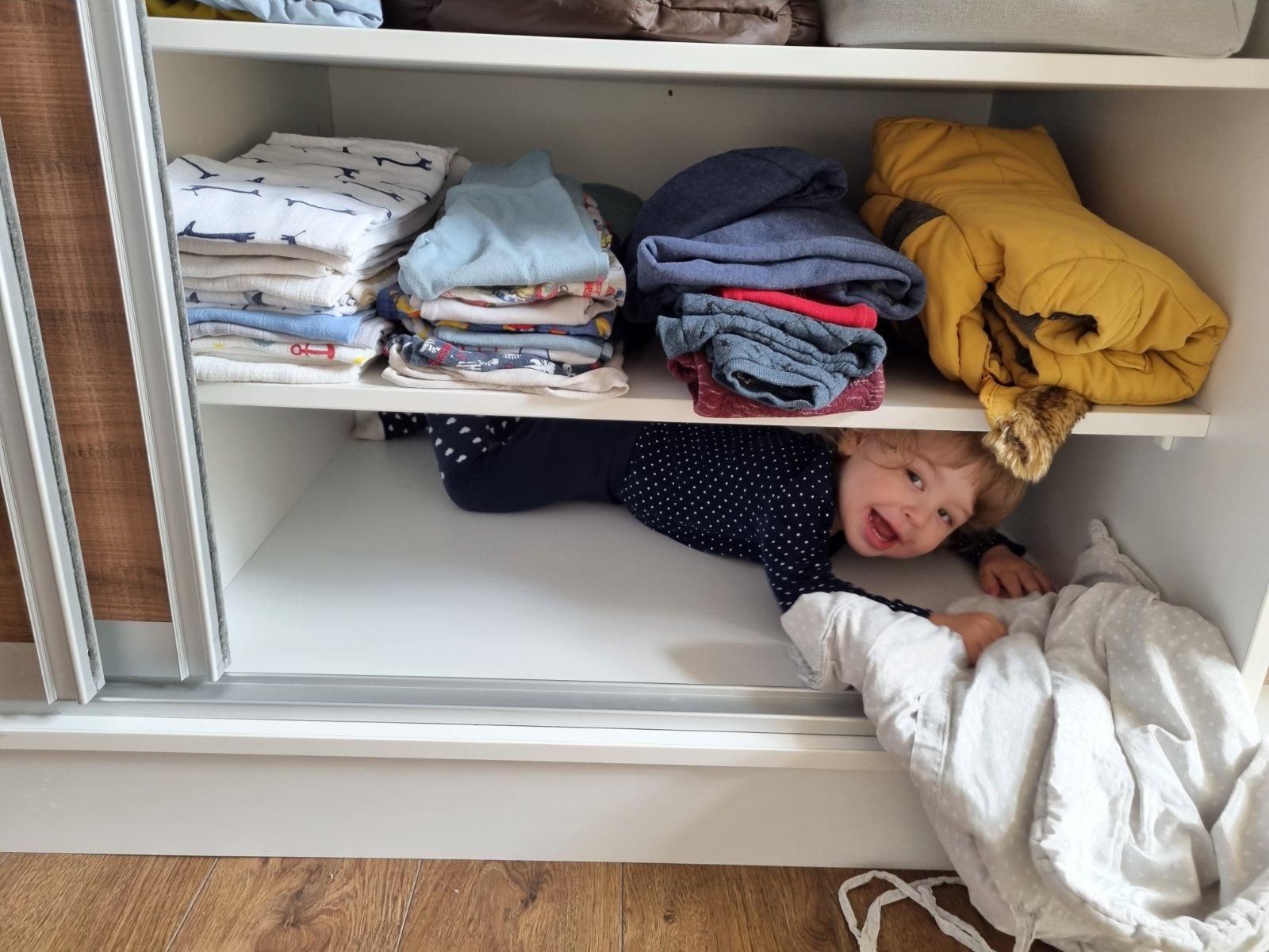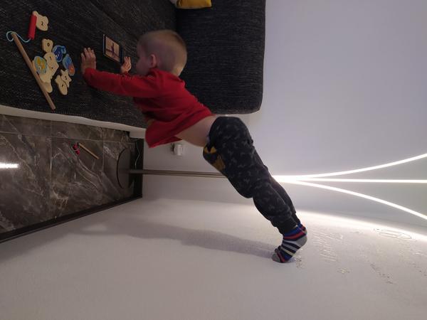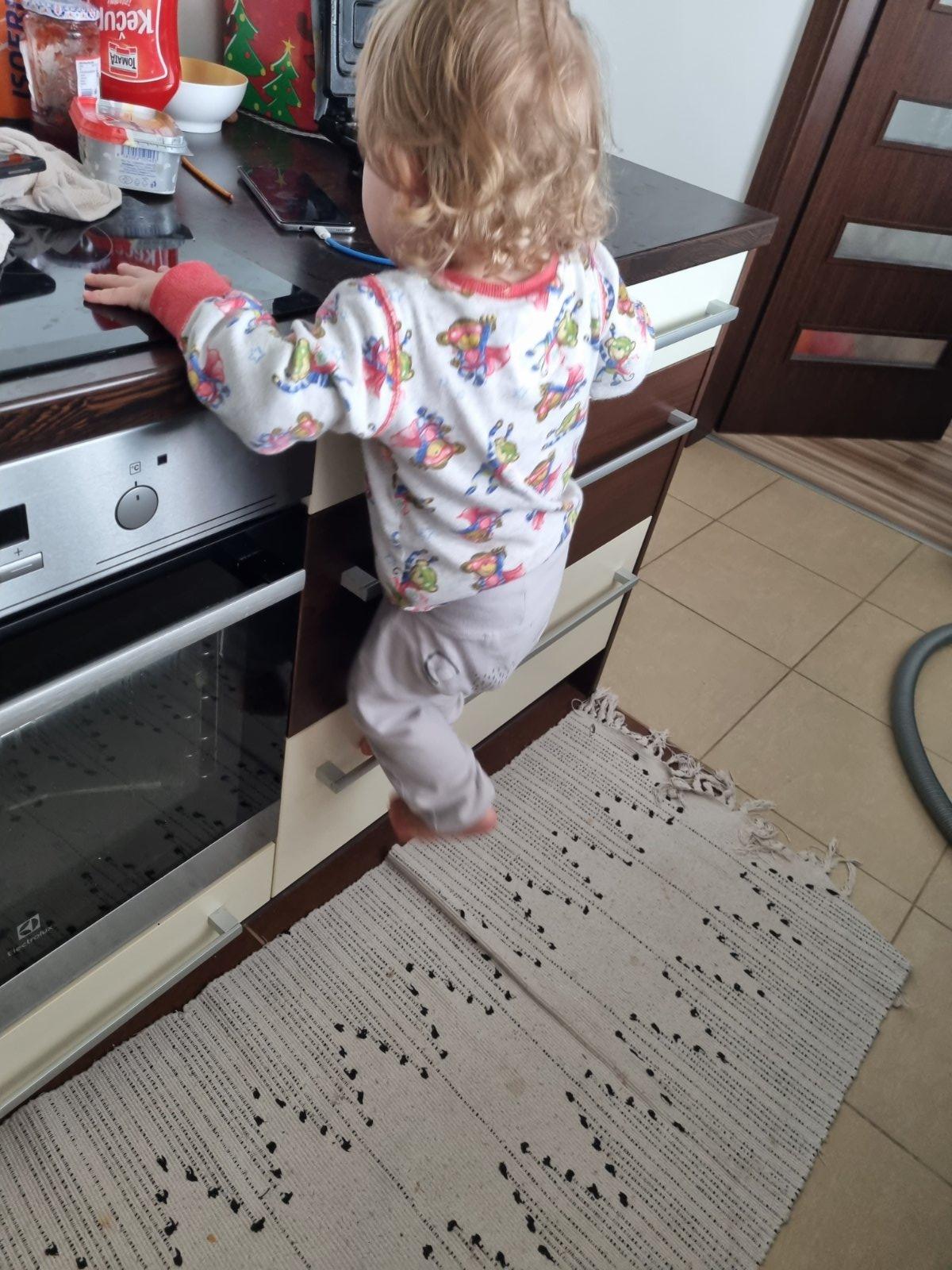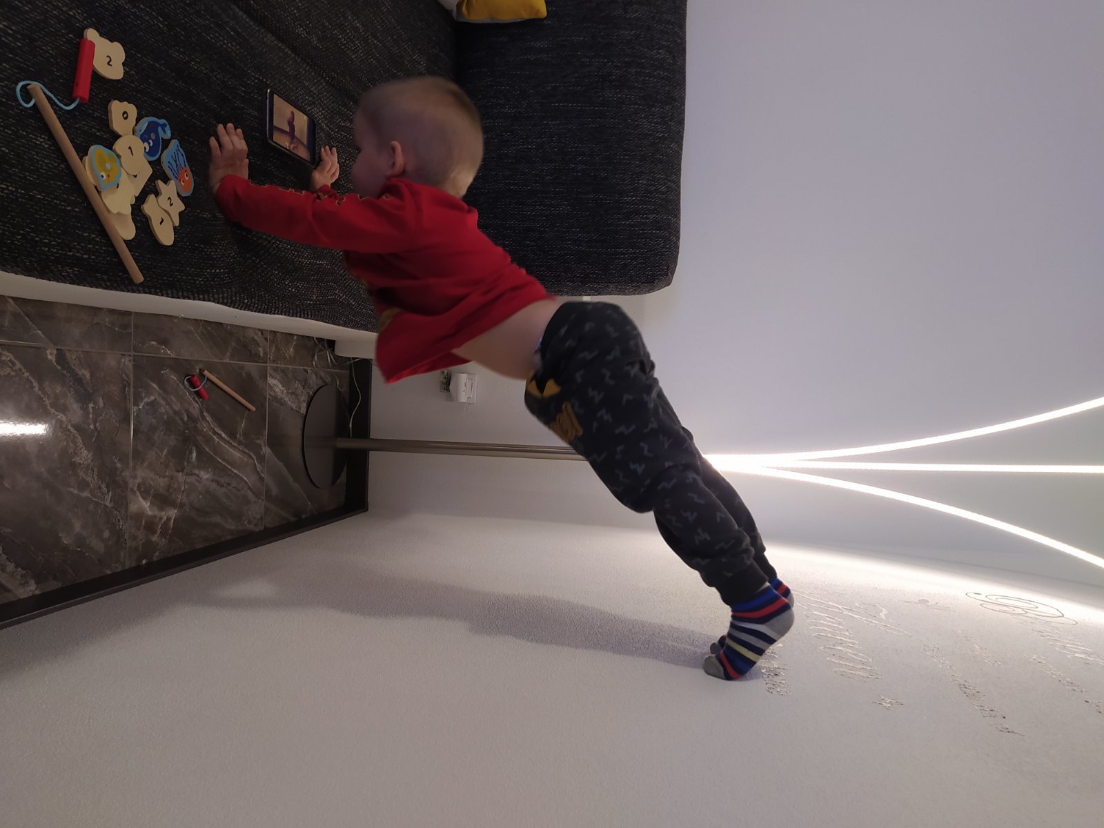 No my máme doma tiež veselo. Celý deň sa nezastaví, stále behá, skáče (už aj z jedalenského stola), plazí sa, schováva, tancuje a ja neviem čo... Na fotke jedno z jeho cvičení, kedy ani nedýcham a čakám, čo sa mu stale... Ale to by som tu mohla písať do nekonečna, čo ten môj čert denne vyparatí 🙂 🤣