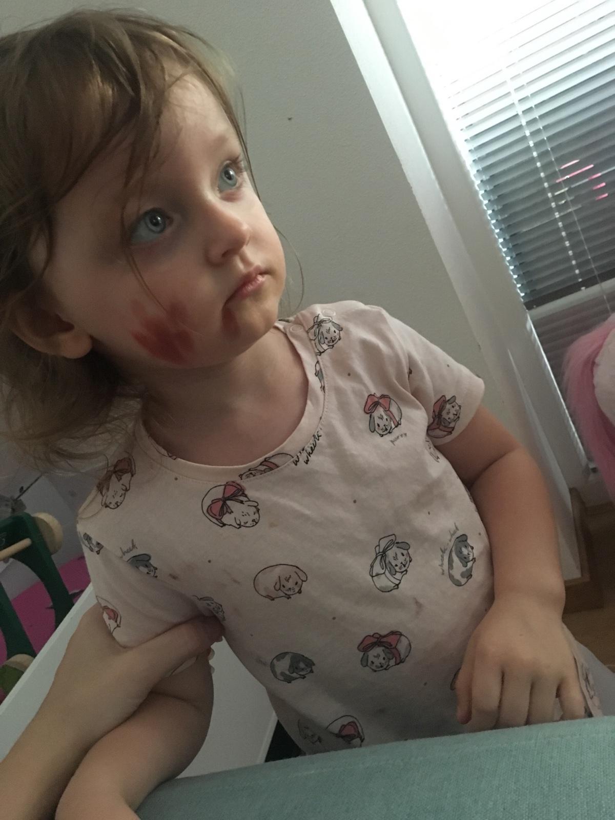 @sutaz tak moje dievčatko je veľmi akčné ale moc tie katastrofy nezachytávam na fotky. Ale teda ako aj iné detičky najradšej má farbičky všetkých druhov a samozrejme maminkine farbičky s ktorými si gerbrí ksichtík, tak prečo by sa nenapatlala aj ona 🙈 ( ale len tak decentne na Marfušku) pripadne prečo si nepočmárala ruky fixkami až polakte ked sme už pomaly na odchode (tak asi tetovanie...ok asi chcela byť ako maminka však sme pre tie deti vzorom) Posledný záber vznikol v neskorých večerných hodinách kedy som si naivne myslela že tá moja príšerka už krásne spinká no nebolo tomu tak prišla za mnou moja dcérka že ma pinavé pyžamko. Pozerám sa čo to na tom pyžamku má, komplet sa z neho prášilo, vojdem do spálne a posteľ komplet zamazaná od makeupu, púder, bronzer všetkoooo. Inak veľmi rada skáče a naša pošteľ už značne vŕzga trampolina by iste postešila.
