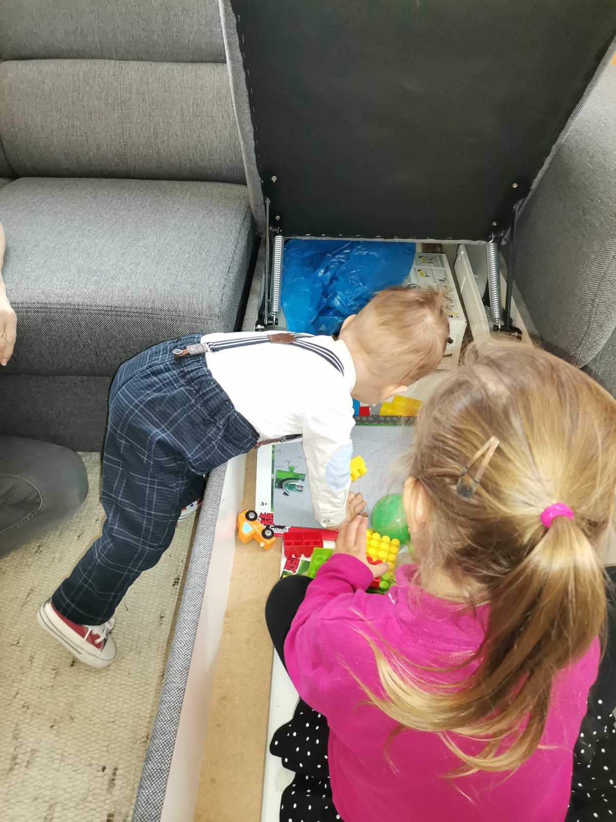 Alex má 2 a pol roka a často sa bojim že budeme musieť ísť na pohotovost😄 bežne poprosí staršieho brata aby na schodíky od poschodovej postele pripevnil matrac, lezie po topení na okno a odtiaľ na hornú posteľ aby sa mohol šmýkať🤪takto sa dokáže zabávať aj hodinu. Bežne skáče po posteliach alebo si dá periny na zem a skáče tam a zábava sa.