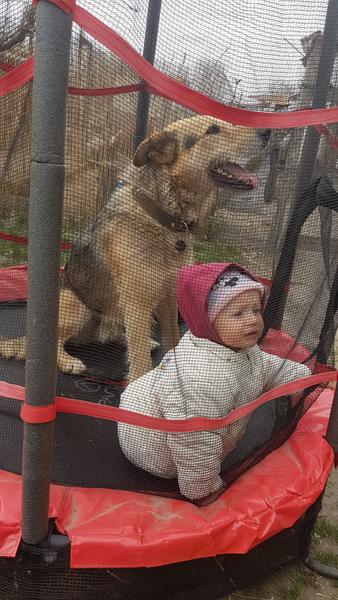 No neviem ,či to je šibalské. Ale Nelka.bude mat o chvilu 2 roky a miluje psov naučila sa otvarat dvere a veci spojene s tym. Boli sme vonku ,davali sme dopkriadku všetky zvieratka Nelka išla sa hrat so psami a o chvilu podozrivé ticho 😄 Kukám kde je ani jeden pes nebol vonku idem potichu nakukunut do budy a tam havinkovia poslusne lezali pri nej , Nelka sedela a delila ... GRANULE jednu Atosovi ,druhú Miuške a tretiu? HAM do pusy no skoro som odpadla 😁 a pučila som sa od smiechu 😁👍🏻 fotku žial nemám z tej situácie , ale dám fotku s havinkami aky su partaci ak najdem 🤷🏼♀️ a to som chcela povedat mame trampolinu ale pre nu je už malá , jednak tam chce napchat furt niekoho alebo niečo a za dalšie take bomby skáče 😁. Švagrina teraz kupila trampolinu AGA sport a tam sa všetky decká vyblaznia a aj dospelí a je to suoer trampolina 👍🏻