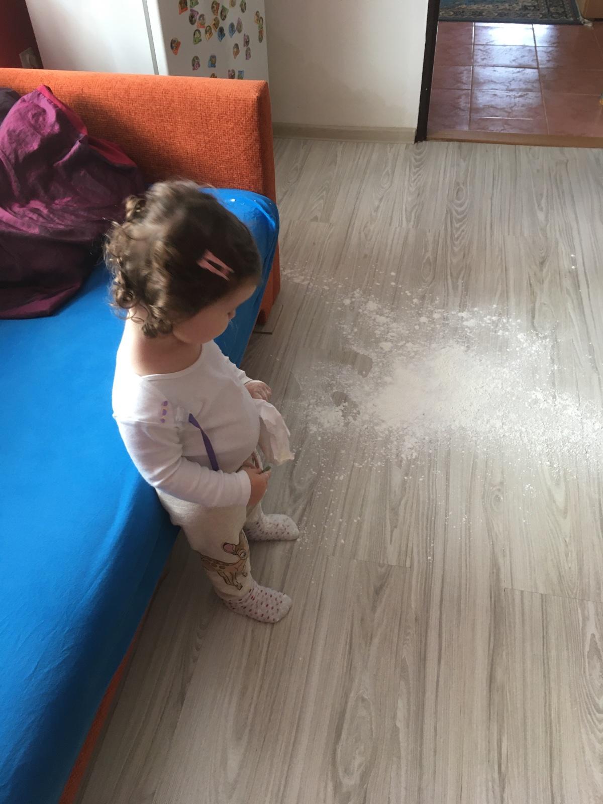 @sutaz raz, keď bolo zrazu veľké ticho a ja som pripravovala obed, pozrela som do obývačky, čo tam to moje malé šidlo robí a ona našla odložený sudokrem a rozhodla sa ním ponatierať celý gauč 🤦